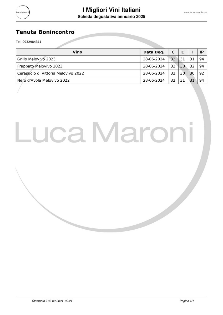 Il sole mediterraneo e la terra calcarea della campagna del ragusano sono gli elementi ideali di questo antico vitigno rosso autoctono, il cui nome – Frappato – sembra fare riferimento al termine “fruttato”, caratteristica saliente del suadente bouquet del vino. Colore rosso ciliegia, asciutto, fresco, dai profumi vellutati e delicati sentori di frutta a bacca rossa che esaltano le caratteristiche sensoriali di questo vino dalle nobili origini. Si abbina, servito fresco, alle zuppe di pesce; a temperatura ambiente con carni bianche e di vitello.